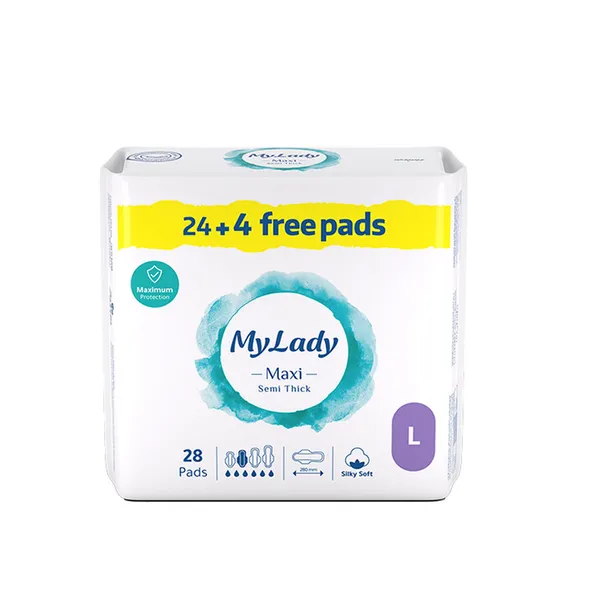 نوار بهداشتی بالدار مکسی پنبه ای سایز L بسته ی 28 عددی مای لیدی