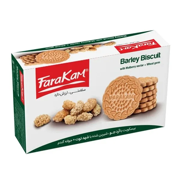 بیسکویت بدون قند با آرد جو و شهد توت و جوانه گندم 500 گرمی فراکام