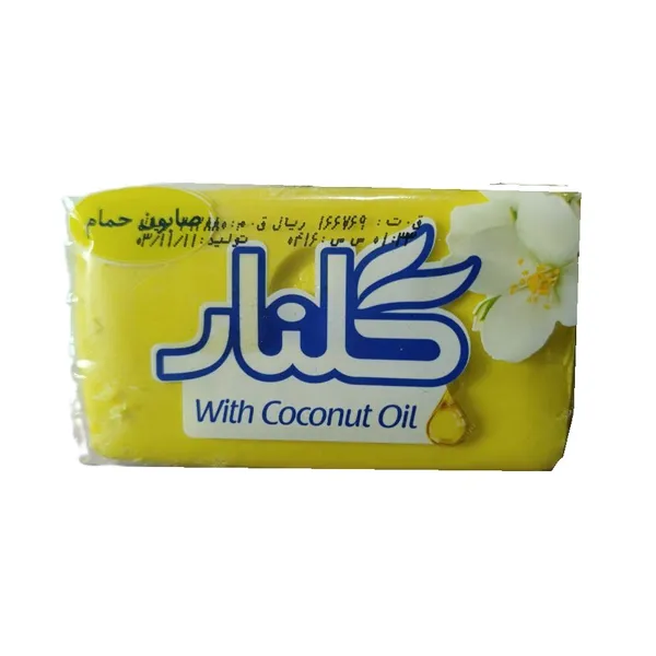 صابون حمام جوان زرد حاوی عصاره روغن نارگیل 130 گرمی گلنار