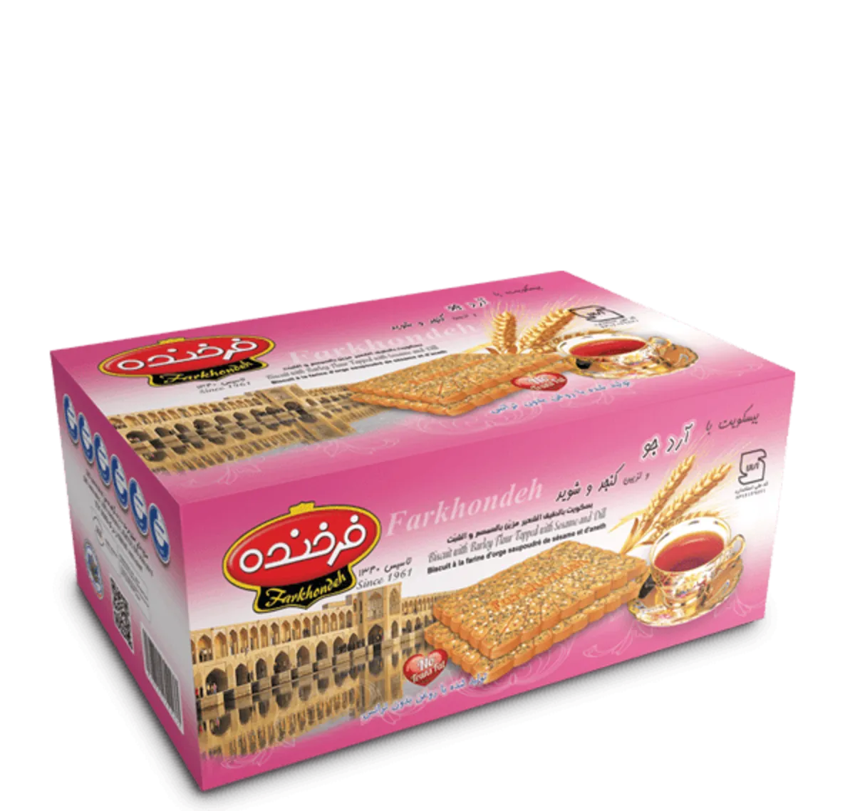 بیسکوییت جو با تزیین کنجد و شوید850 گرمی فرخنده